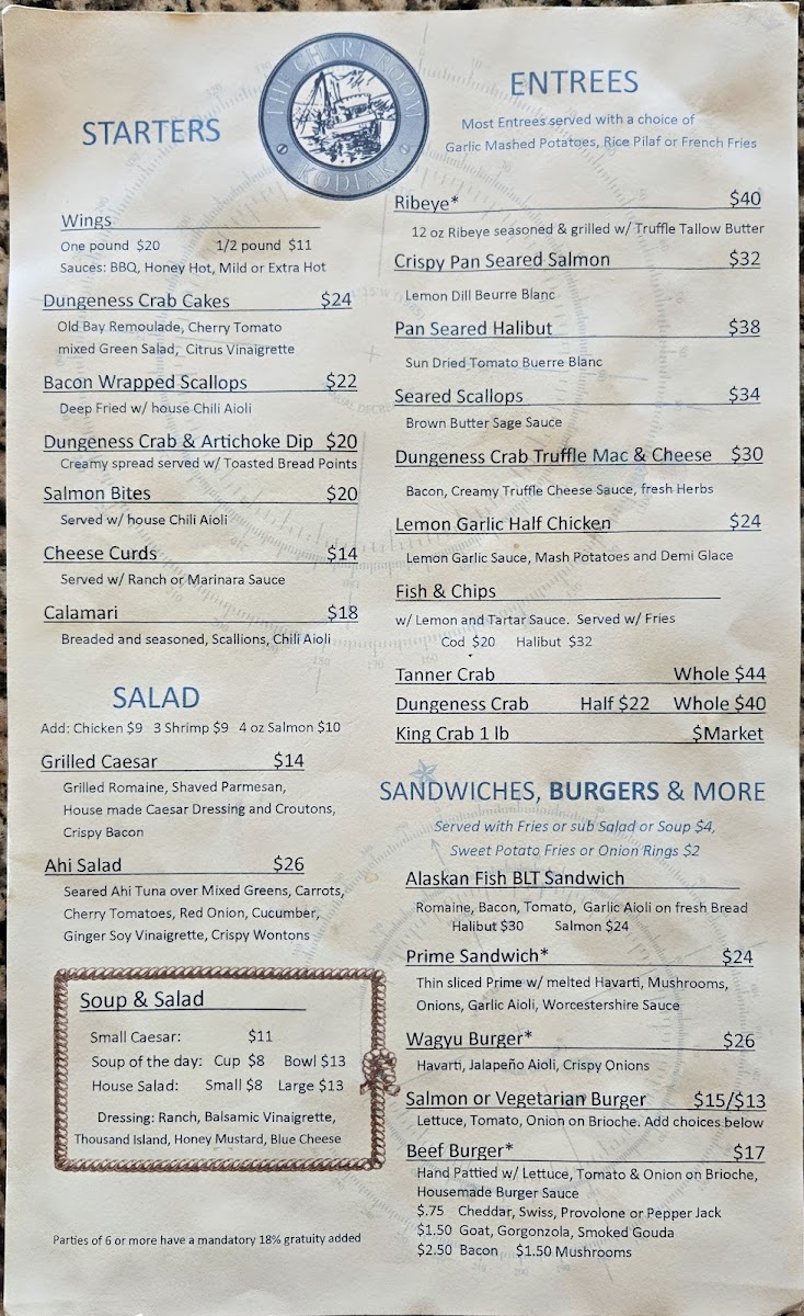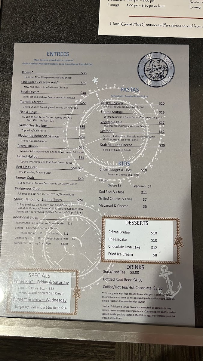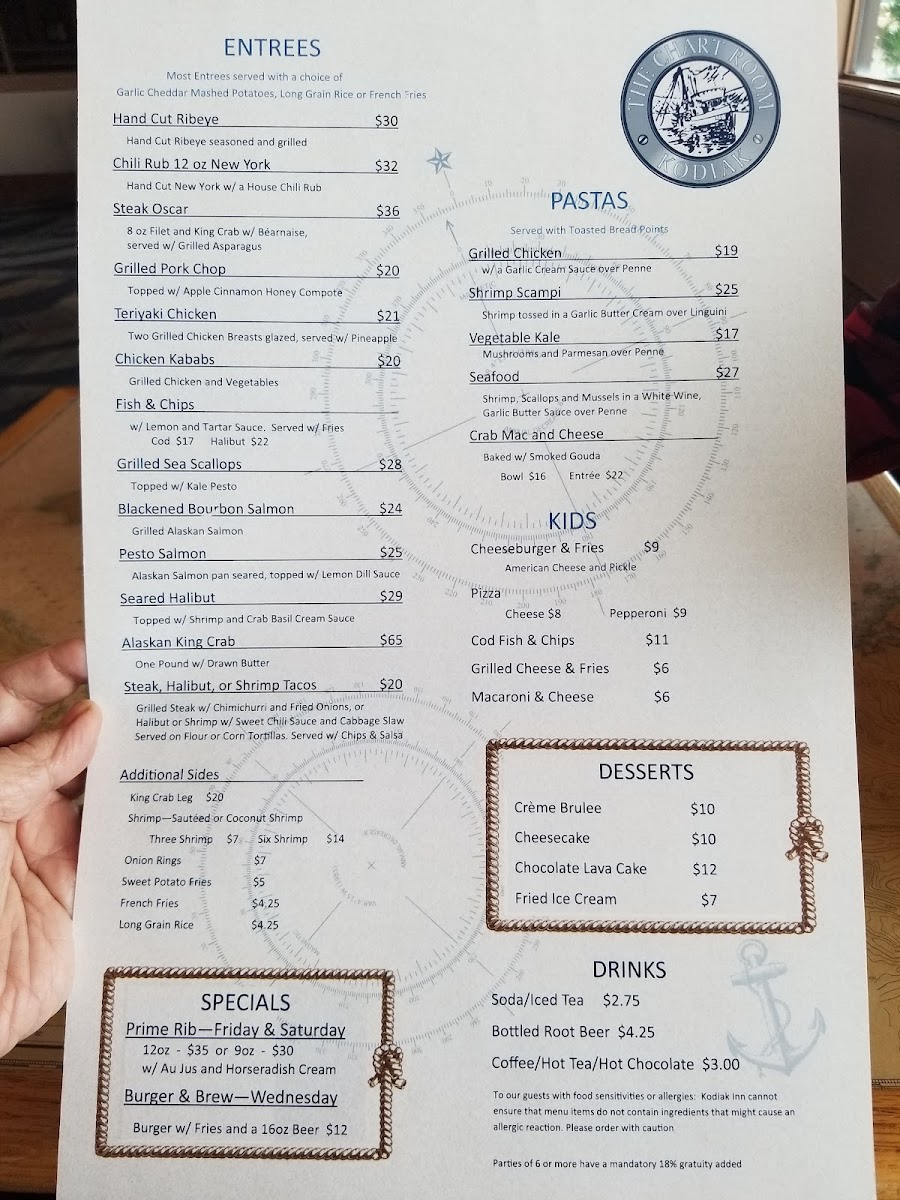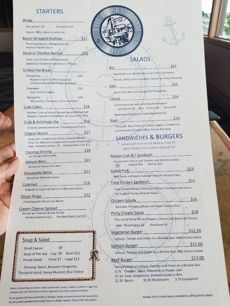 If you’re curious about what to order before stepping inside, the Chart Room Menu gives you a pretty good taste of what to expect at 236 Rezanof Dr W in Kodiak. Sitting right by the water, this spot leans into hearty, satisfying dishes that feel just right after a long day outdoors. You’ll find plenty of local seafood woven throughout the menu - think fresh catches prepared simply, letting the flavors speak for themselves - alongside comforting classics that hit the spot every time.